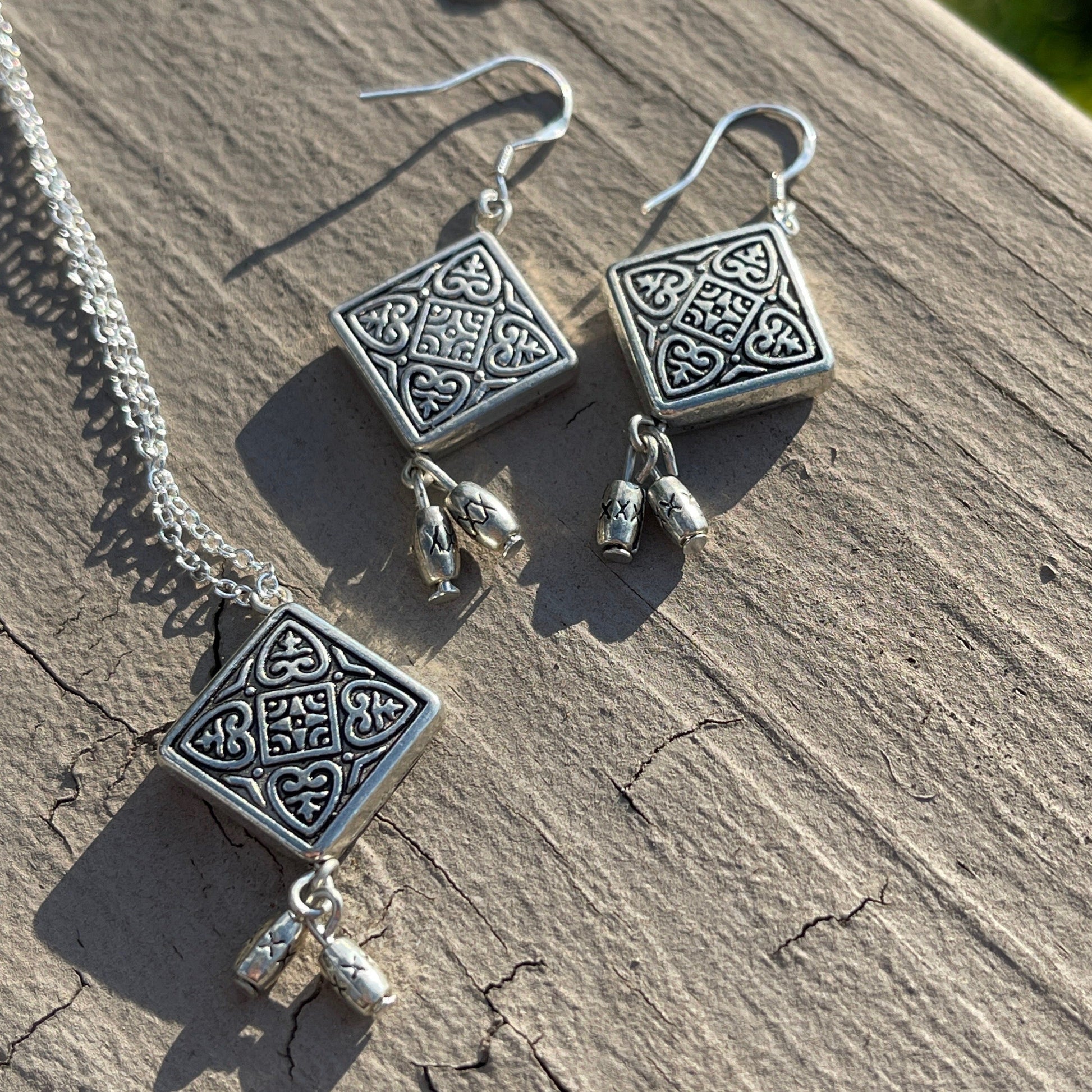A highly textured Bali silver pendant on an 18" Sterling silver chain.