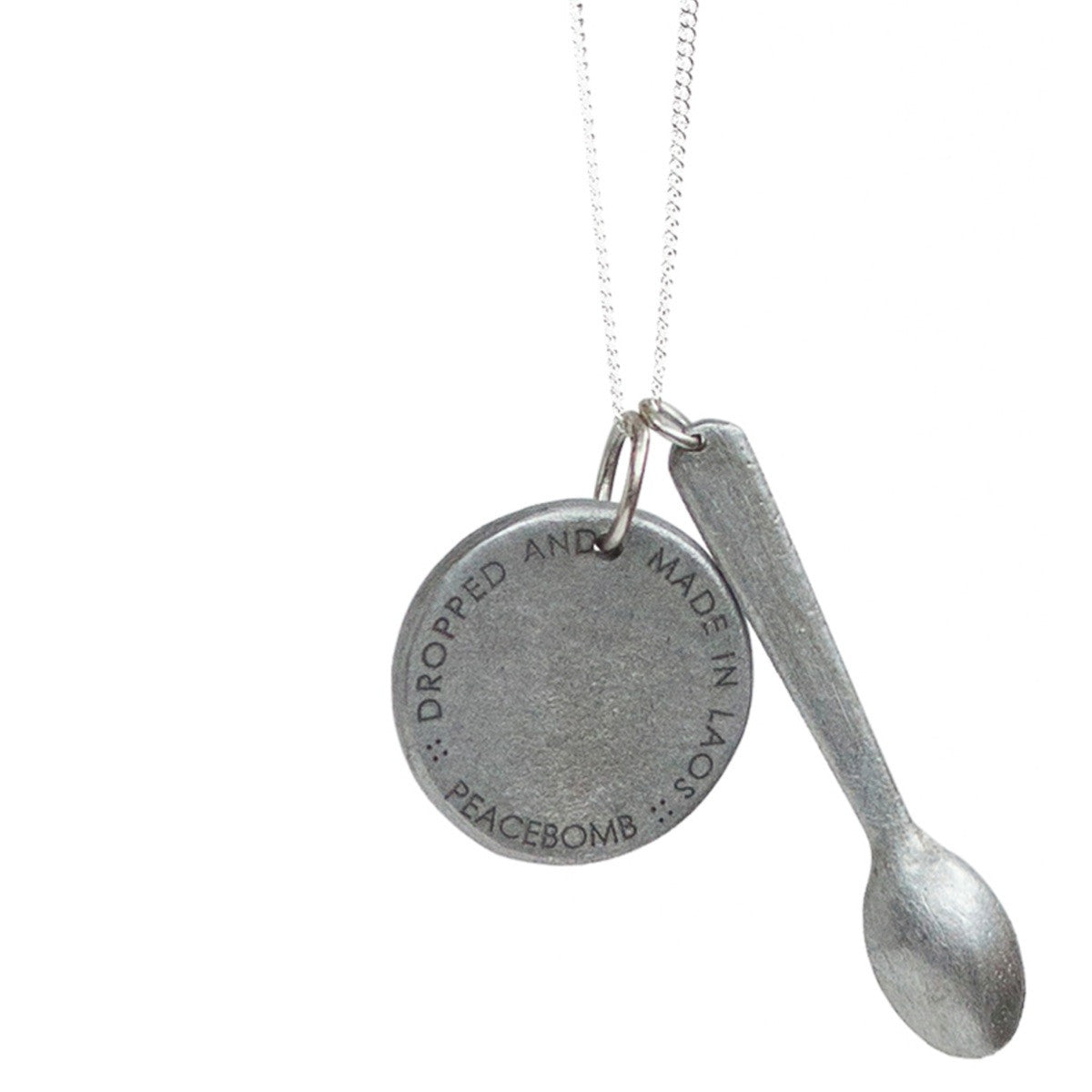 The massage is engraved on our Peacebomb Aluminum Metal and finished with 20" sterling silver chain.