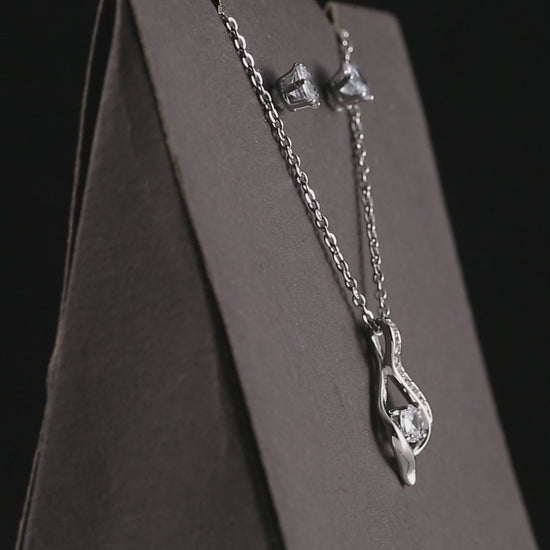 Embrace your feminine side with the delicate Ribbon Necklace and Cubic Zirconia Earring Set. The necklace features a soft and romantic design, while the cubic zirconia earrings provide a subtle yet sparkling touch of elegance.